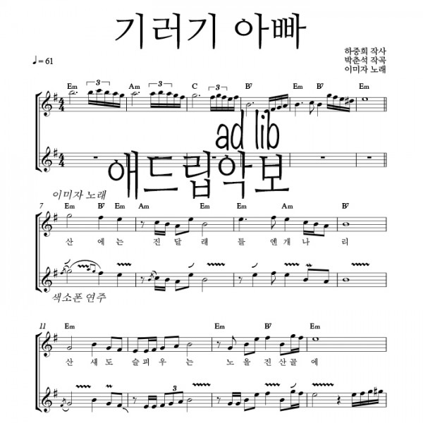 기러기 아빠 - 색소폰 애드립 연주 악보 | 이미자