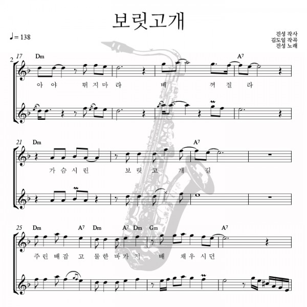 돌릴 수 없는 세월 - 색소폰 애드립 악보