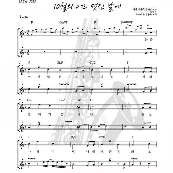 10월의 어느 멋진날에 색소폰 애드립 악보 | 김동규