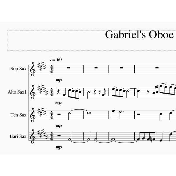 영화 The Mission ost Gabriel's Oboe 를 색소폰 4중주 악보로 그렸습니다.